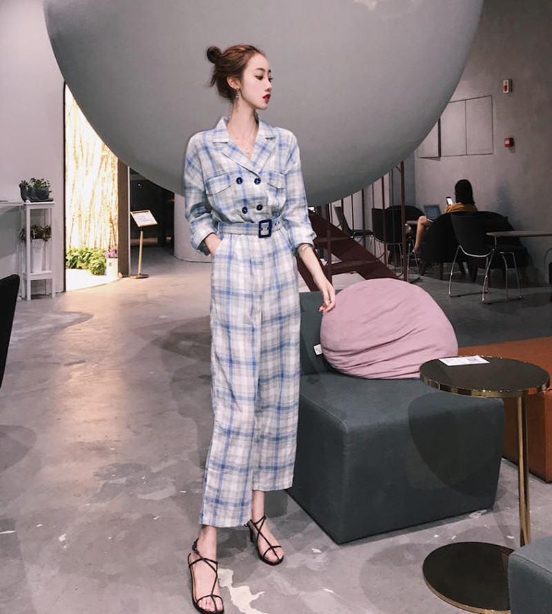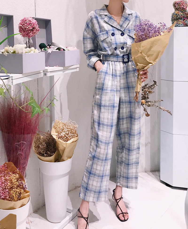 ♢ポイント♢ トレンドのチェック柄オールインワンです。 ベルト付きなのでメリハリが出ます♪