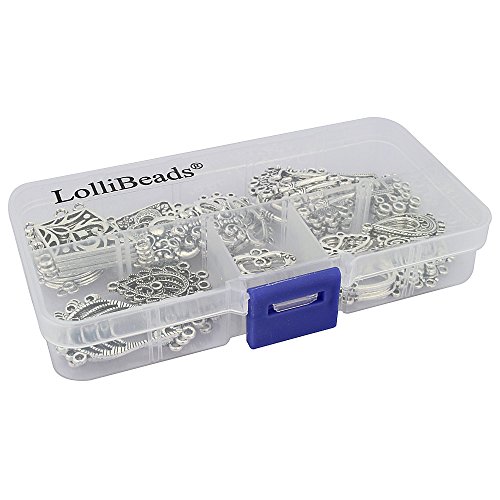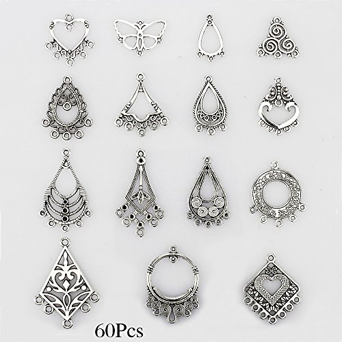 LolliBeads (TM) Antiqued Tibetan Silver Earring Chandelier Earring Jewelry Making Kit for Earring Drop and Charm Pendant Assorted Pack (60 Pcs)