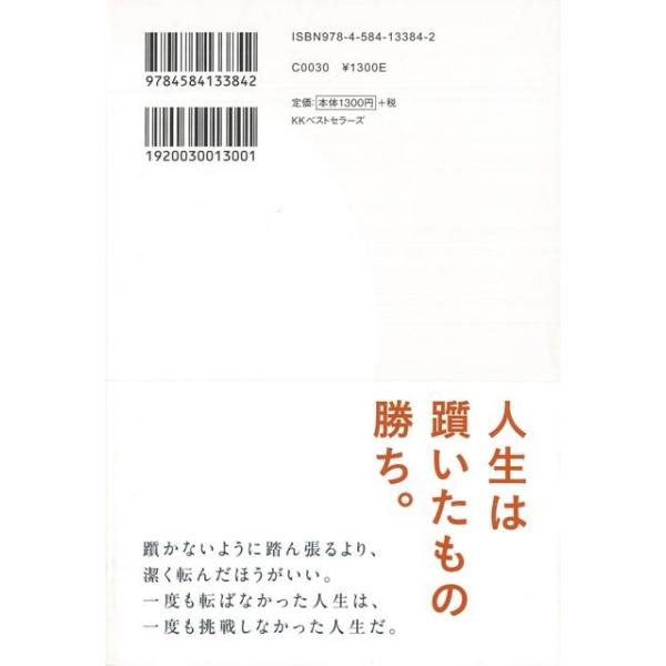 【商品説明】 定価(税込み):1,404円 値引き:10% OFF 著者は本書のなかで、こう言葉をかける。「人生は躓いたもの勝ち。そんなに石橋を叩き過ぎたら、橋が崩れてしまうよ。躓かないように踏ん張るより、潔く転んだほうがいい。一度も転ばなかった人生は、一度も挑戦しなかった人生だ。」と。そして具体的な「躓き」に関しては、以下のような熱いアンサーを投げかける。 バーゲンブック 新品 特価 格安 ビジネス 経済 スキル | |