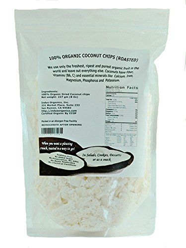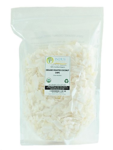 Indus Organics Dried Coconut Chips/shreds, Roasted, 8 Oz Bag, Premium Grade, No Added Sugar, Freshly Packed
