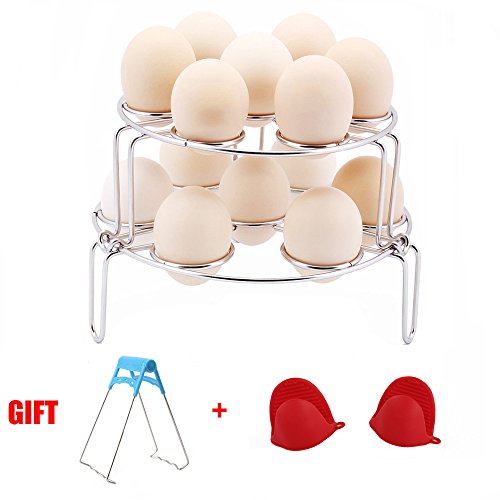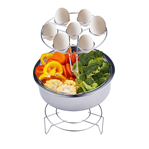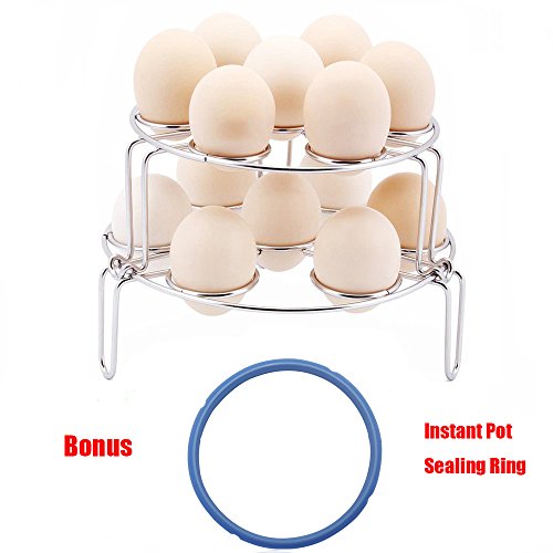 NEWEST DESIGN FOR COOK 14 EGGS: Three legs design,footed base add stability, great workspace for steaming eggs, finishing foods, like decorating cookies, cupcakes, and more. Steamer rack is design to be stackable (the long leg steaming rack on the top), which could cook 14 eggs maximum, easily keep eggs stay put in your instant pot