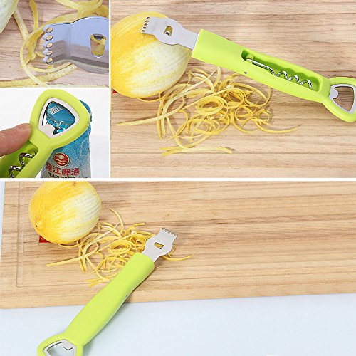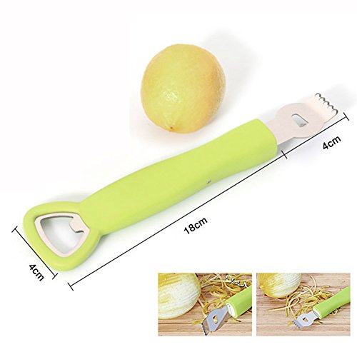 Studio : AVESON Publisher : AVESON Product Description Want to make some lemon swirls in your lemonade and to garnish, or just need some zest from a lemon when cooking a pie? AVESON Lemon Zester with Channel Knife is a Ideal Gadget to easily zest or peel lemons, lime, oranges, thick skinned fruits and vegetables and more. With two uses in one utensil, this little tool is the ultimate for working with citrus. Made with heavy-duty stainless steel and plastic for durability and great looks for your kitchen and bar. Five sharp zester holes quickly and easily zest lemons, oranges and other citrus fruits, with minimum effort. Built-in channel knife peels citrus fruits and make beautiful garnishing twists elegantly and easily. Built-in bottle opener and wine corkscrew for convenient use Easy to clean and dishwasher safe For bar enthusiasts or cocktail connoisseur, it's a perfect garnishing flavor bar tool for Martinis, cocktails, mocktails!