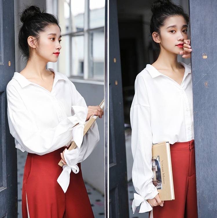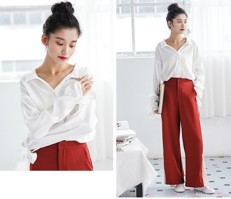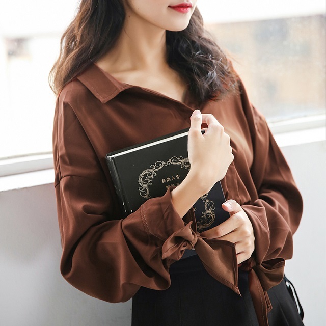 シンプルルックなワンカラーブラウスもゆるっとしたサイジングと