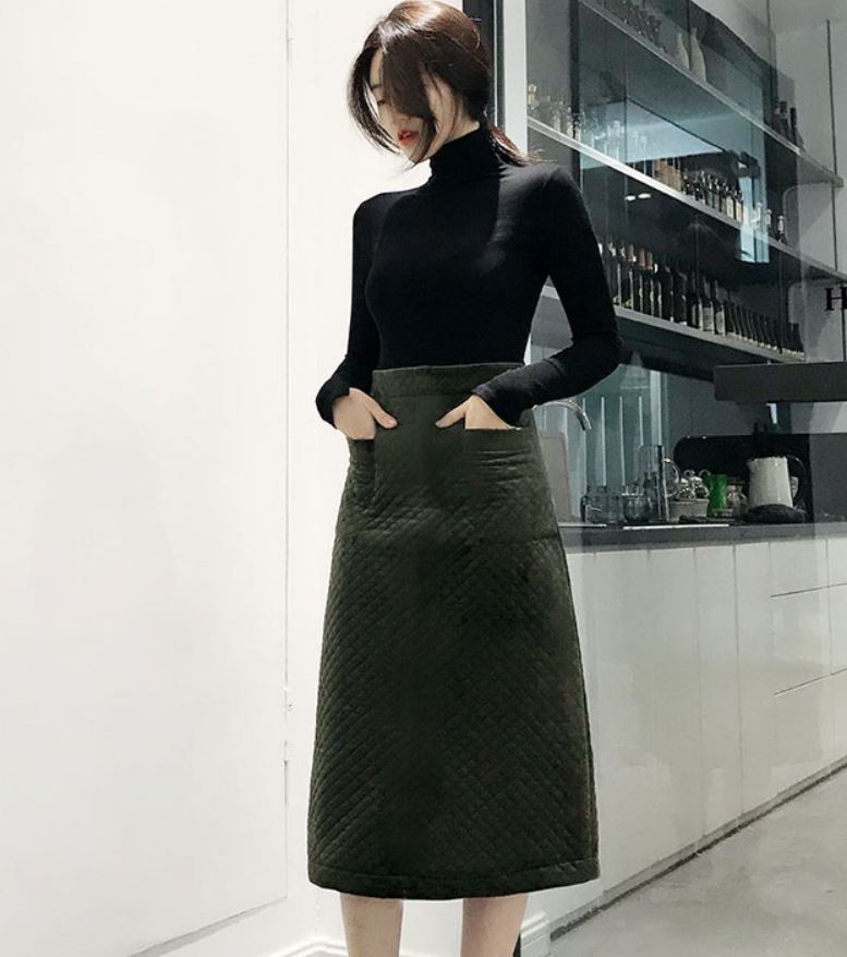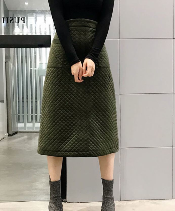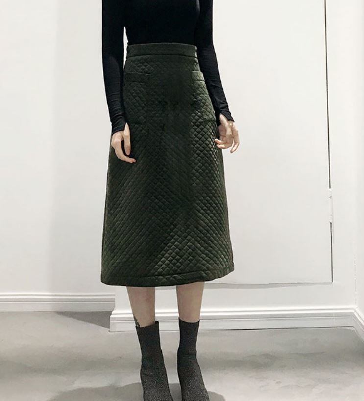 落ち着いた色味とキルティング生地が季節を感じさせる、とってもオシャレなAラインスカート♪