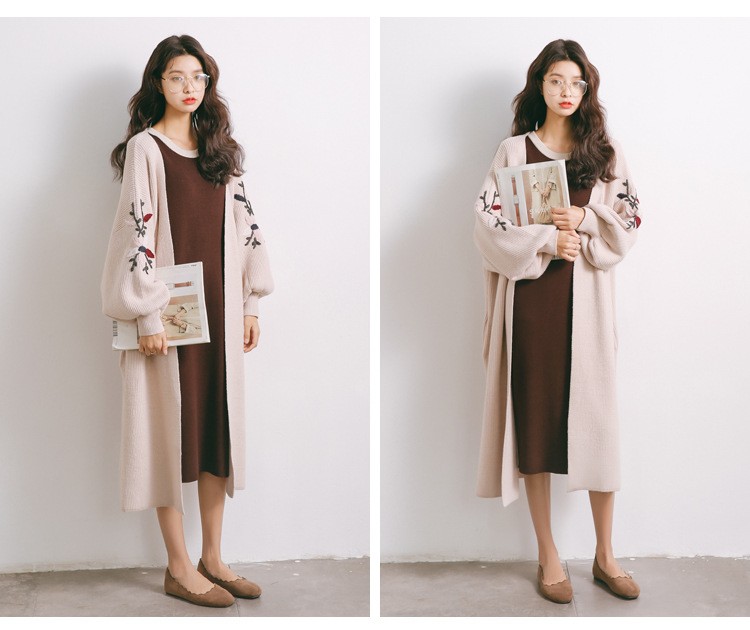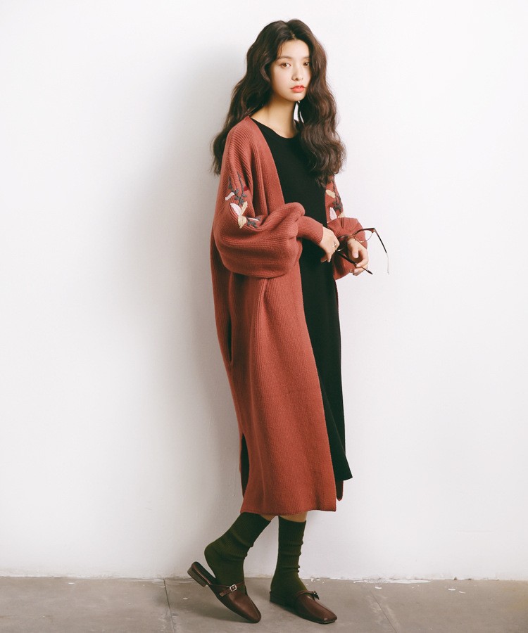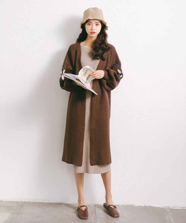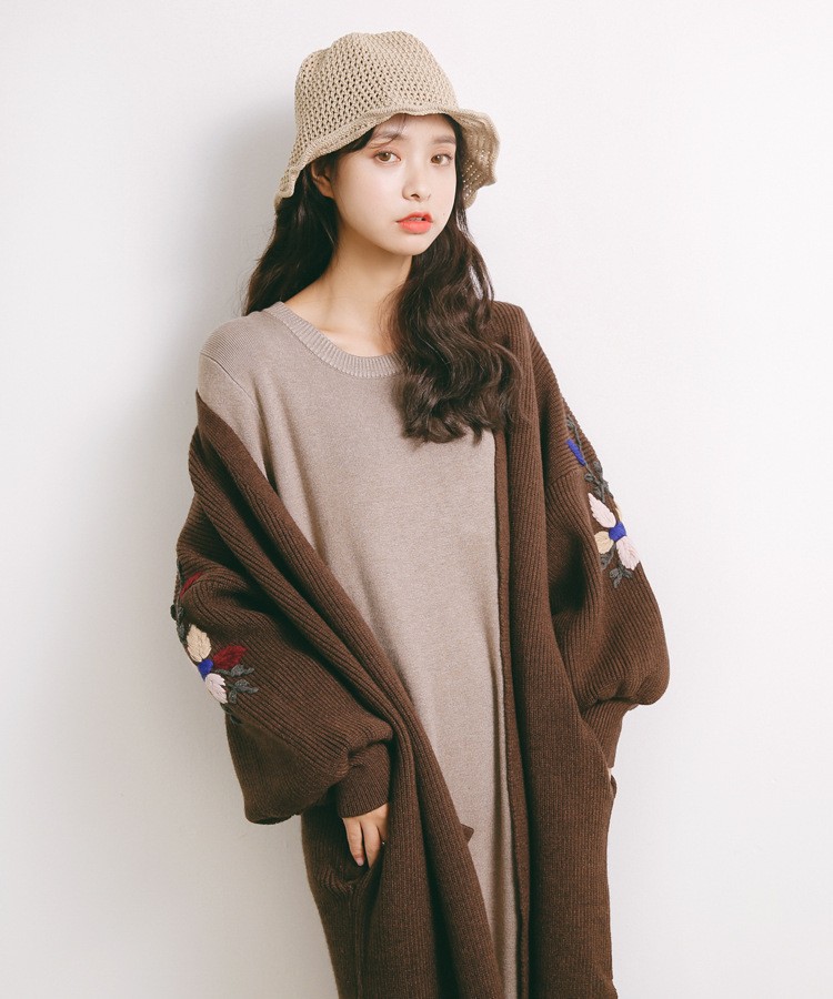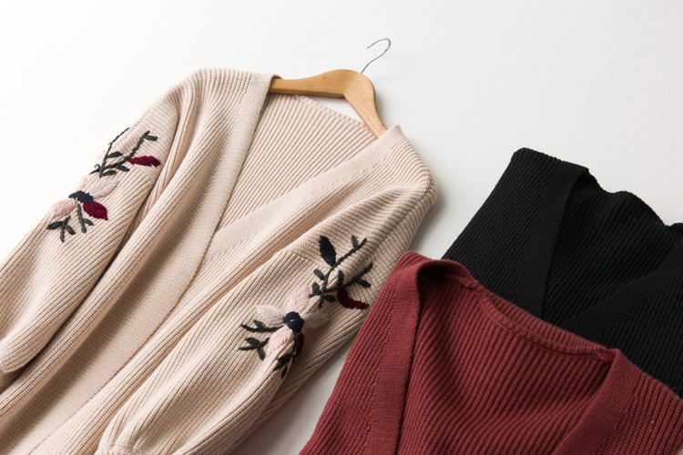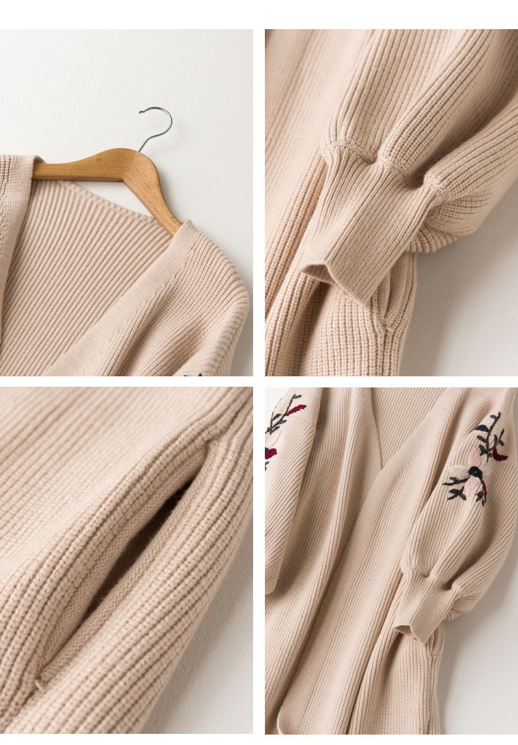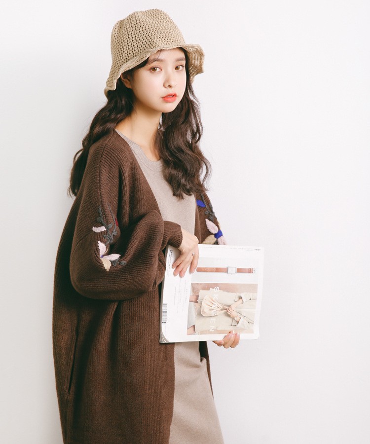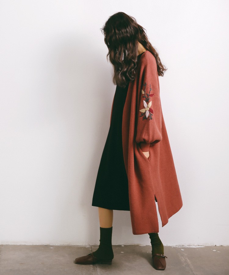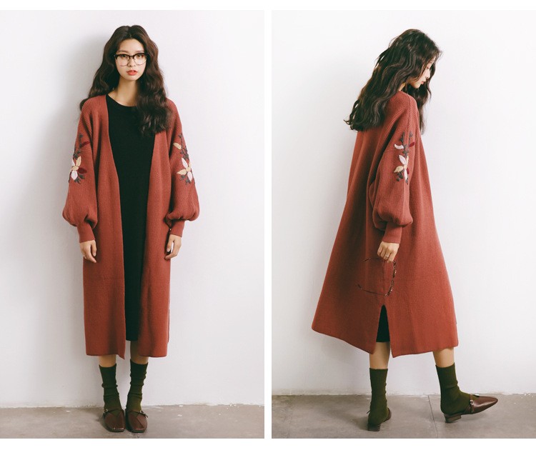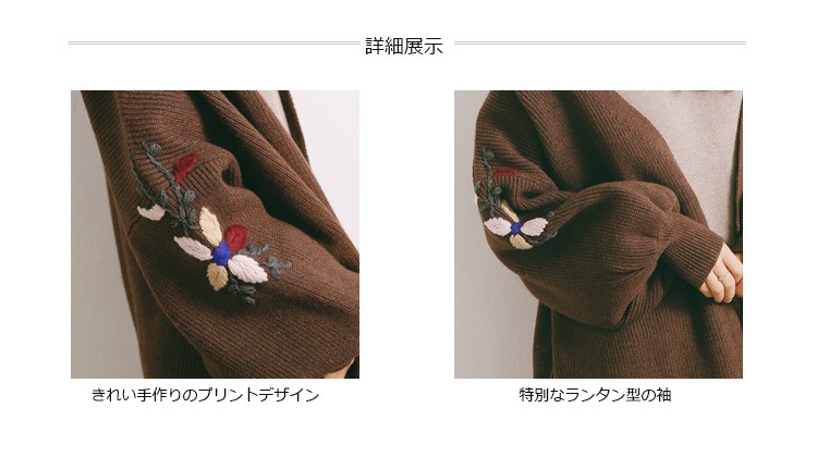 材質:55%ビスコース 27%ポリエステル 18%コットンカラー:ダークレッド、コーヒー、ブラック,アプリコットサイズ(cm) F (フリーサイズ):着丈:96cm バスト:126cm 袖丈:37cm約 商品内容:1x本体注意:平置き実寸採寸のため生地の伸縮性や素材によっては多少の誤差が出る場合がございます。ご了承下さい。特徴:【ポケット付き、便利】ポケットがついて、小物など持ち可能です。とても便利です。【きれい花の刺繍柄】袖にきれい花の刺繍柄が付きます。すべて、人工で作ります。【ランタン袖】ゆったりしたランタン袖はコートーがそんなに単調になれないです。【暖かい材質】セーターは暖かい材質で作ります。秋や冬にも適用します。お買い得です。【ファッションなデザイン】ゆったりとしたなサイズ感で万能のカジュアルスタイルはシャツ等の羽織りとしてカジュアル合わせもお勧めです。