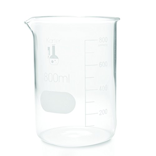 800ml Beaker, Low Form Griffin, Borosilicate 3.3 Glass, with Spout & Printed Graduations, Karter Scientific 232U4