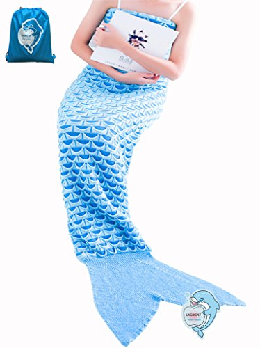 Title : LAGHCAT Mermaid Tail Blanket Knit Crochet and Soft Thick Mermaid Blanket for Adult,Sleeping Blanket (71"x35.5", Light Blue)