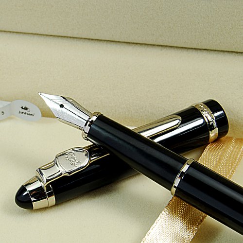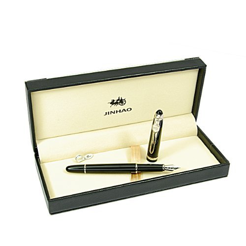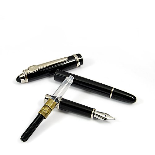 -. Binding : Office Product -. Brand : JINHAO -. Color : Black -. EAN : 0843906440033 -. Feature : Lenth (with cap on): 5.5 inches Weigth: 50g / Tip: Fine 18kgp Tip / Converter/ Filler :Piston Style (Turns end of filler with a piston taking in ink ) Cartridge compatible (Not include) / With clip on the cap / Material :Mostly Chrome Steel; Each fountain pen comes inside an attractive gift box and with a booklet;Comes without ink -. Label : PHgiveU -. Manufacturer : PHgiveU -. MPN : os0644B -. PackageQuantity : 1 -. PartNumber : os0644B -. ProductGroup : Office Product -. ProductTypeName : WRITING_INSTRUMENT -. Publisher : PHgiveU -. Size : Standard -. Studio : PHgiveU -. Title : Classic Black Metal Jinhao Collection Fountain Pen with Piston Filler Silvery Clip -. UPC : 843906440033