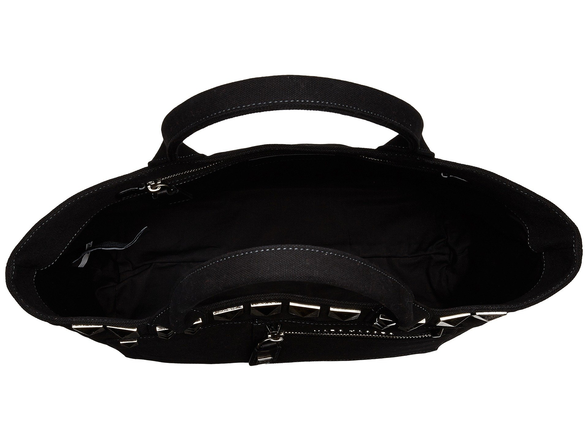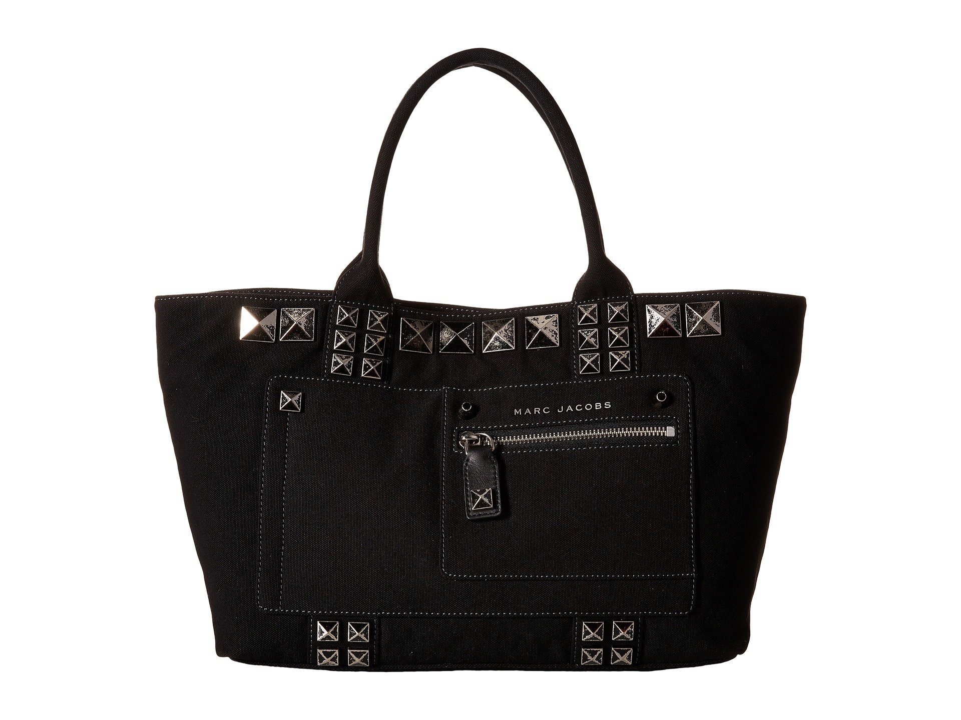 | Product Information SKU: #8732406No matter your destination, make it there in style carrying the Marc Jacobs™ Canvas Chipped Studs Tote. Tote made of polyester. Dual rolled top handles. Front exterior zip pocket. Edgy metallic hardware adorned throughout.Brand name hardware at front. Flat base to provide upright structure. Lined interior features back-wall zip pocket and front-wall slip pockets. Imported. This item may ship with an attached security tag. Merchandise returned without the original security tag attached or a damaged tag may not qualify for a refund.This product may have a manufacturer's warranty. Please visit the manufacturer's website or contact us at warranty@support.zappos.com for full manufacturer warranty details.Measurements: Bottom Width: 14 in Depth: 6 in Height: 6 in Strap Length: 10 1?2 in Strap Drop: 18 in Handle Length: 7 in Weight: 1 lb 15 oz |