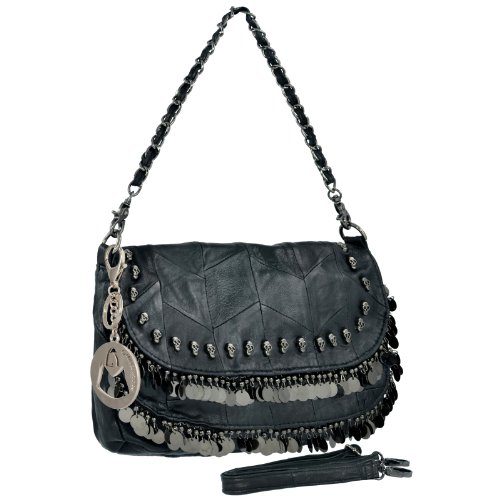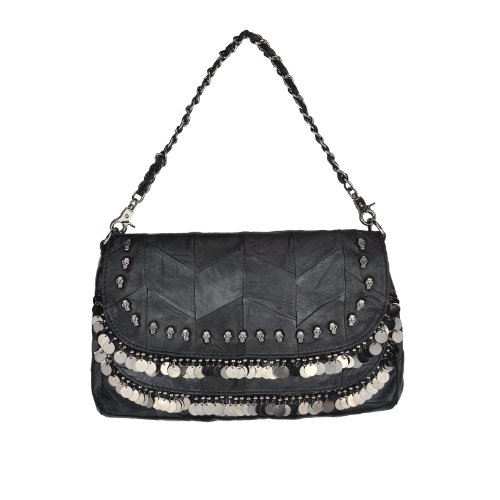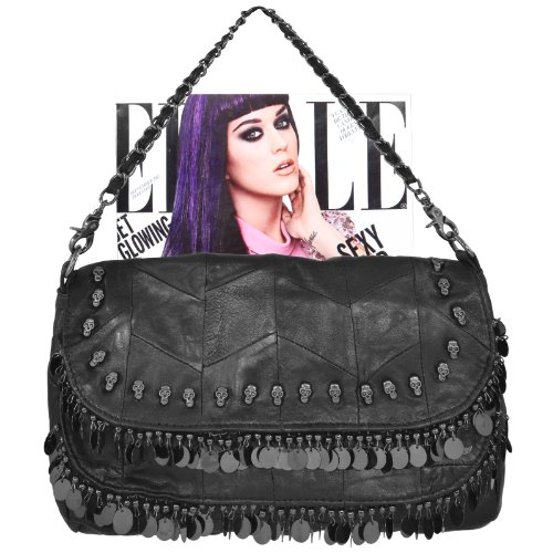 - Title : MG Collection KATE Gothic Skull Studded Sequined Fringe Black Leather Hand Bag