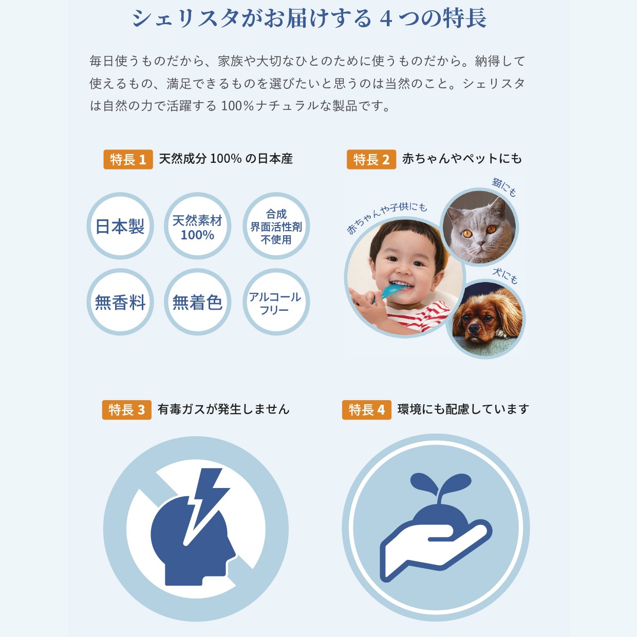 【天然由来】合成界面活性剤・保存料・着色料・香料は一切使用していません。