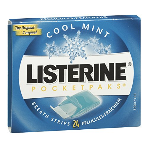 Refresh your mouth with Listerine Cool Mint Pocketpaks Breath Strips, 24-Strip Pack. These strips dissolve instantly, killing 99percent of germs that cause bad breath.* Slip your pack into your purse or pocket, so you can easily freshen up after your morning coffee, or before a meeting or date. Each strip has a refreshing Cool Mint flavor to leave your mouth feeling clean and fresh.*In laboratory tests.