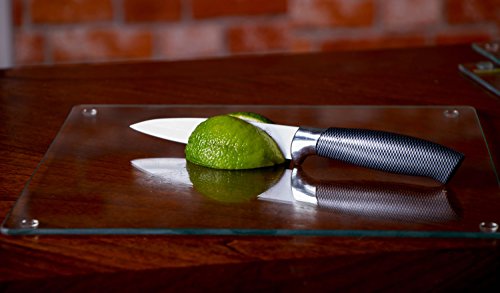 - SHATTER AND SCRATCH RESISTANT: The tempered glass is specifically engineered to resist shattering and not to show knife wear. The added rubber feet on the bottom ensure it will not slide around. Looks beautiful and stays beautiful for years to come
