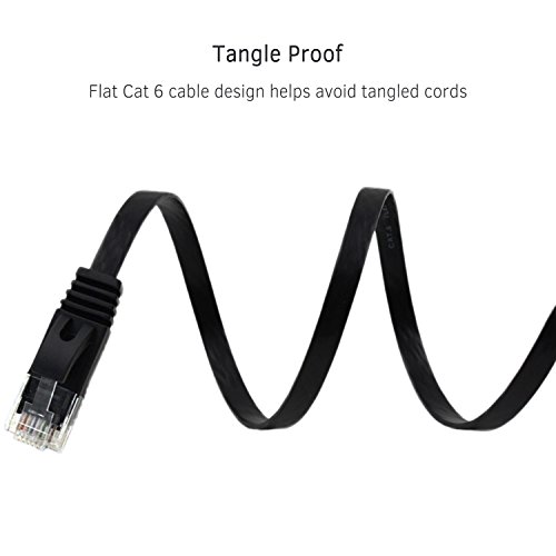 - ✔Flat Cat 6 cable design helps avoid tangled cords and saves space.Flat Ethernet cable is super flexible when run under the carpet or bent in the plane of its thin cross-section such as doors, rotating arms, drawers etc