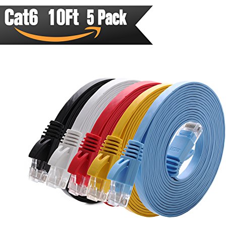 Cat 6 Ethernet Cable 10 ft ( 5 PACK ) (At a Cat5e Price but Higher Bandwidth) Cat6 Internet Network Cable Flat - Ethernet Patch Cables Short - Computer Lan Cable With Snagless RJ45 Connectors