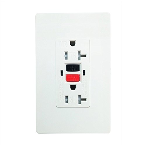 - SECKATECH 20 Amp 125 Volt Tamper-Resistant & Automatically Tests & Weather-Resistant GFCI ac outlet, Indicater with LED light, 2 free wallplates and screws--White