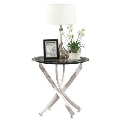 -. Title : Wade Logan Round Metal-Glass End Table with Artistic Bold and Curving Base Design in Nickel Chrome Finish