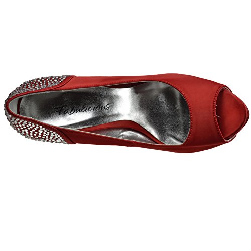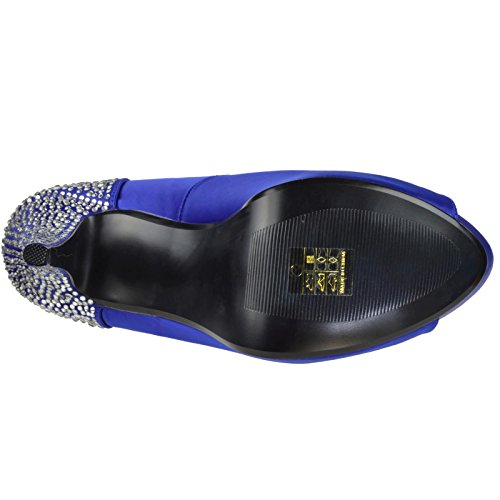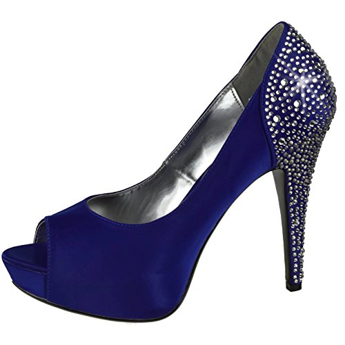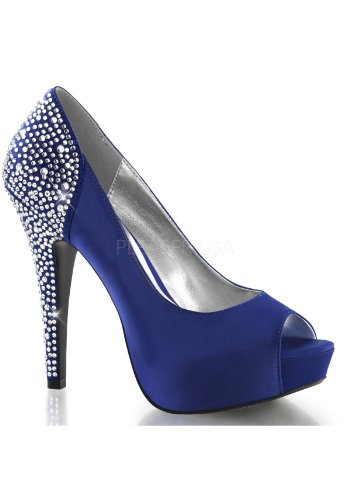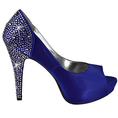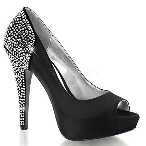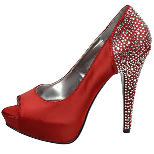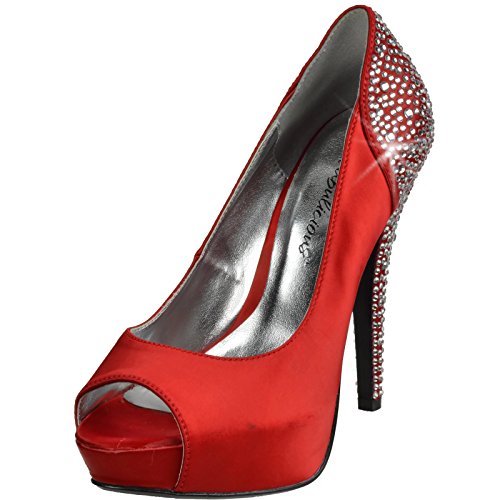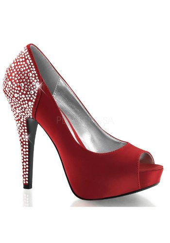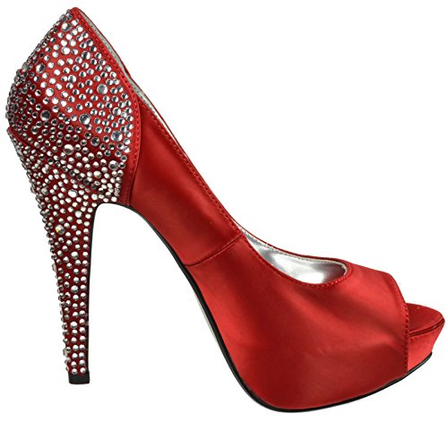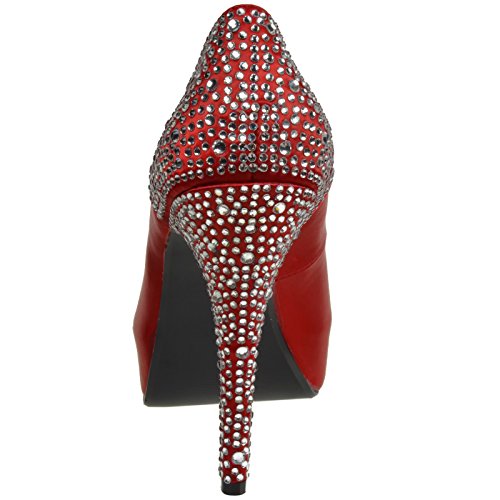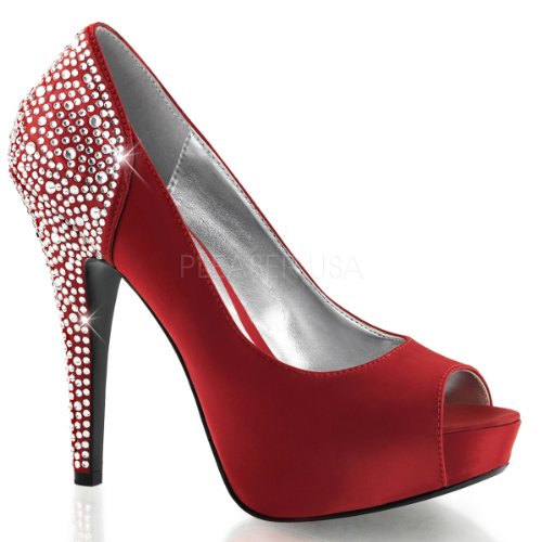 Product DescriptionHeel Height: Approx. 5' Tall. 1" Hidden Platform Peep Toe Pump with Rhinestones Embedded on Heel and Back Counter.0