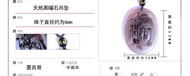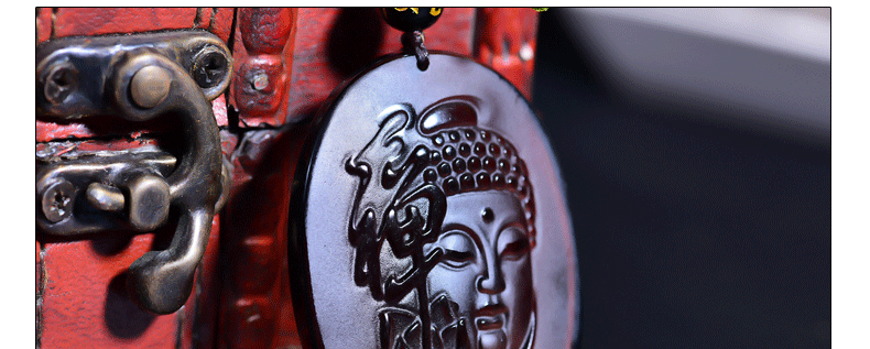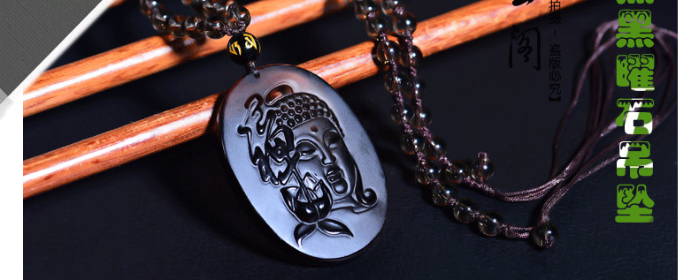 开光 天然冰种黑曜石大日如来吊坠 生肖属羊猴本命佛守护神项链
