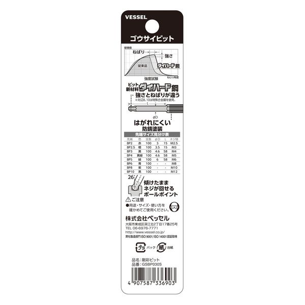 ●六角穴付ボルト、六角穴付止めネジ用のビットです。