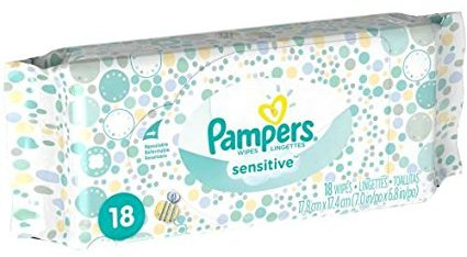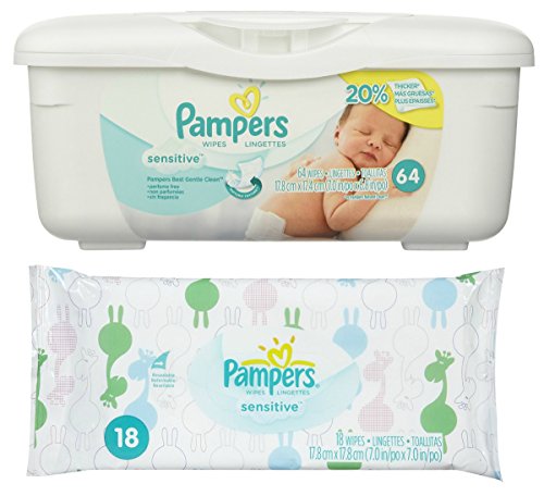 Pampers Baby Wipes Tub, Sensitive 64 ct + Bonus Travel Pack 18 ct