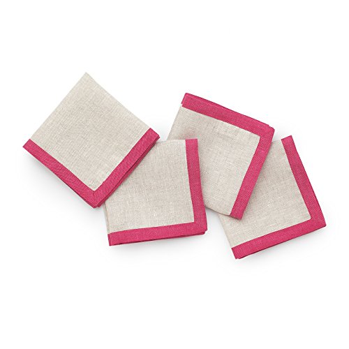 -. Feature : 100% Pure Linen Napkins with 1/2 Inch Pure Linen Colored Border / Made from 100% European Flax. Luxuriously Soft to the Touch / Set of 4 Cocktail Napkins, Size - 9 x 9 Inch / Easy Care - Machine wash cold. Use Mild, Liquid Detergent. Low Iron as needed, Do not Bleach / Crafted in India by skilled Artisans