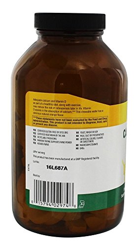 Calcium Citrate with Vitamin D3 120 ChewableAdequate calcium and Vitamin D as part of a healthful diet, along with exercise, may reduce the risk of osteoporosis later in life. Vitamin D assists in the absorption of calcium. This chewable wafer has a delicious natural orange flavor.Suggested Use As a dietary supplement Adults chew four (4) wafers daily with food. As a reminder, discuss the supplements and medications that you take with your health care providers. - Or as directed by your healthcare professional.Supplement FactsAmount Per Serving% Daily ValueCalories25Total Carbohydrates7 g2%Sugars7 gVitamin D (D3) (as cholecalciferol)400 IU100%Calcium (as calcium citrate)1,000 mg100%Daily Value Not EstablishedPercent Daily Values are based on a 2,000 calorie dietOther Ingredients: Fructose.mannitol,stearic acid (from a sustainable palm source),starch,natural mandarin orange flavor,citric acid,silica,luo han fruit concentrate.Warnings: Keep out of reach of children. As with all dietary supplements, consult your healthcare professional before use. See product label for more information. If you are pregnant or nursing, taking medication or planning a surgery, consult your doctor before using this product. If any adverse reactions occur, stop taking the product and consult your doctor.