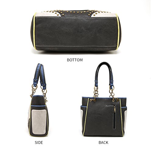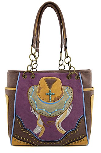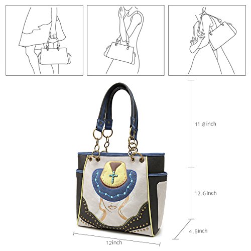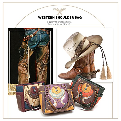 Tote Bag ANGIE & ALLIE Western Shoulder Bag Cowgirl Rhinestore Studded with Backside Concealed Saddle Pocket Waterproof Cowgirl Handbag