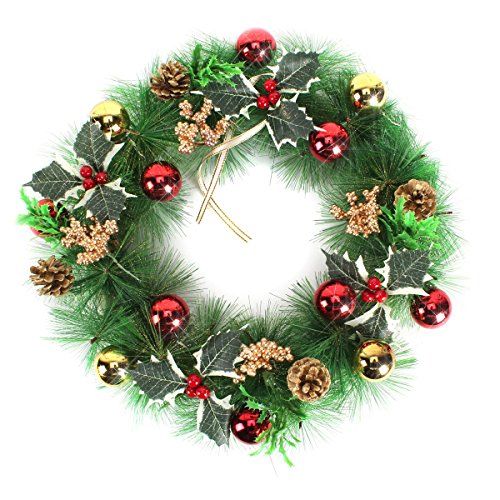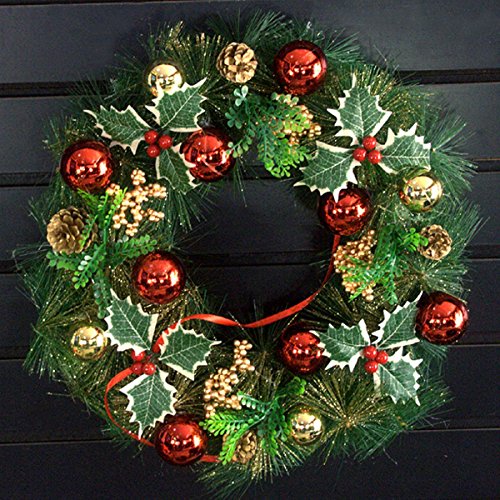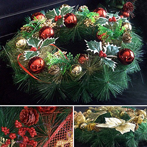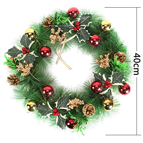 Yesurprise Christmas Wreath Xmas Gift Large 16 Inch Pine Garland with Berries for Home Party Front Door Wall Decor