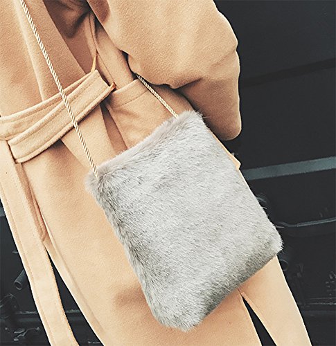 QZUnique Women's Spring Soft Faux Fur Shoulder Bag Plush Cossbody Tote Handbag
