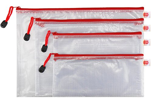 PVC Zippered Envelope Organization Storage Pouch Bags (4, Red)