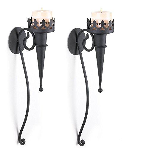 2 MEDIEVAL GOTHIC TORCH STYLE BLACK PILLAR CANDLE HOLDER WALL SCONCE ,NEW