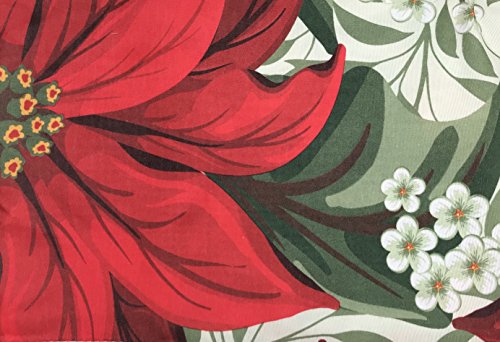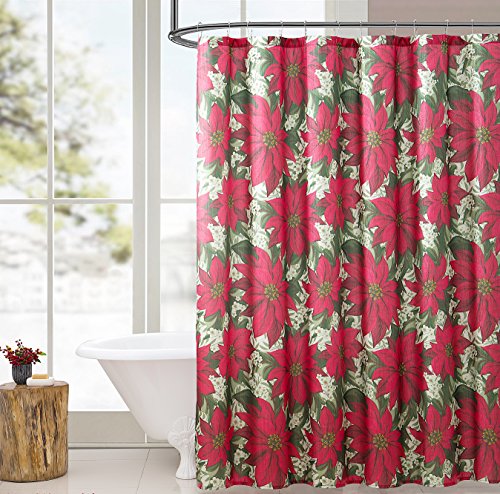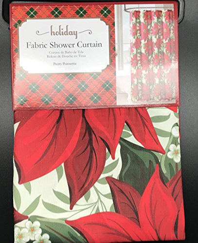 Holiday Christmas Fabric Shower Curtain: Pretty Poinsettia Jasmine Design, Red, White, Green, 72" x 72"