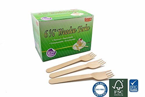 Gmark Eco-Friendly 250 ct Wooden Forks, 6.25" Length Disposable Biodegradable Wooden Cutlery, Green Product (Box of 250pcs) GM1007