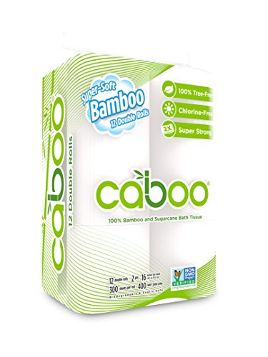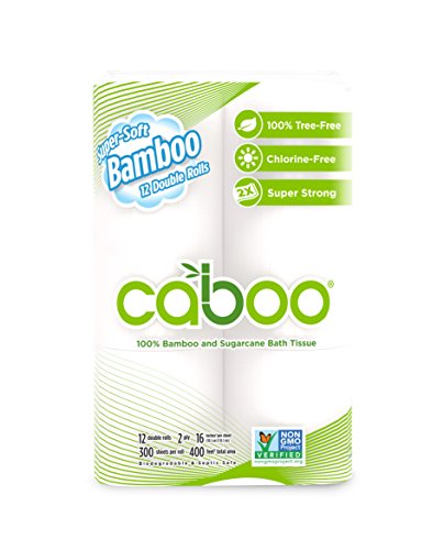 Caboo Tree-Free Bamboo Toilet Paper, Septic Safe Biodegradable Bath Tissue, Eco Friendly Soft 2 Ply Sheets, 300 Sheets Per Roll, 12 Double Rolls