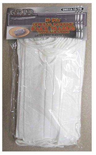 -. Binding : Misc. -. Brand : SIS E-Store -. EAN : 0886461083284 -. Feature : 10 pieces in the package - quantity so you can use for many days / LATREX FREE! Ear Loops - if you have a latex sensitivity you don't have to worry / You just place it over your mouth and nose, and wrap the elastic loops behind your ears / Filters against household dust, pollen, pet dander and non-toxic pollutants / Great for allergies - will protect you from dust and pollen- great for travel & Protect Ohters if you have a cold or flu -wear this mask so you can protect others from the spresad of air borne germs -. Label : GRID -. Manufacturer : GRID -. Model : LEPAE1344 -. MPN : B00OYMXGN8 -. PackageQuantity : 1 -. PartNumber : B00OYMXGN8 -. ProductGroup : Health and Beauty -. ProductTypeName : PERSONAL_CARE_APPLIANCE -. Publisher : GRID -. Studio : GRID -. Title : GRID: 10 Piece General Purpose Face Masks - Protection from Allergies -. UPC : 886461083284