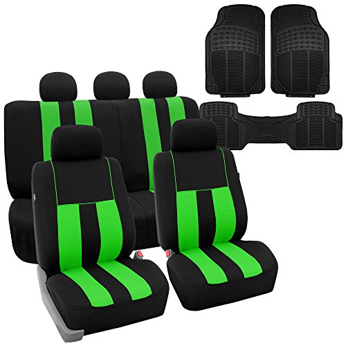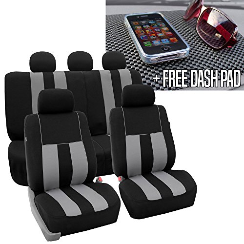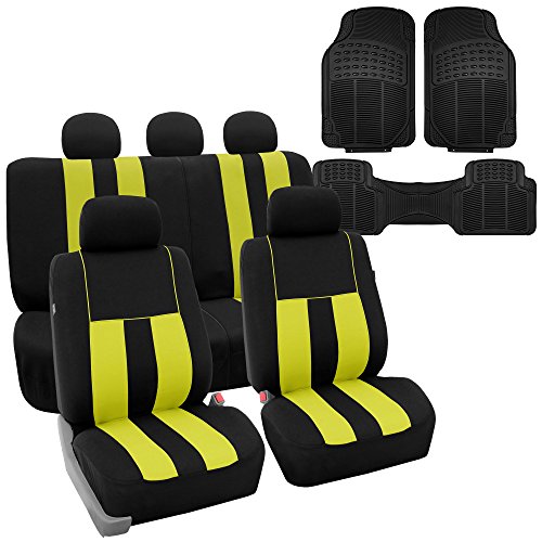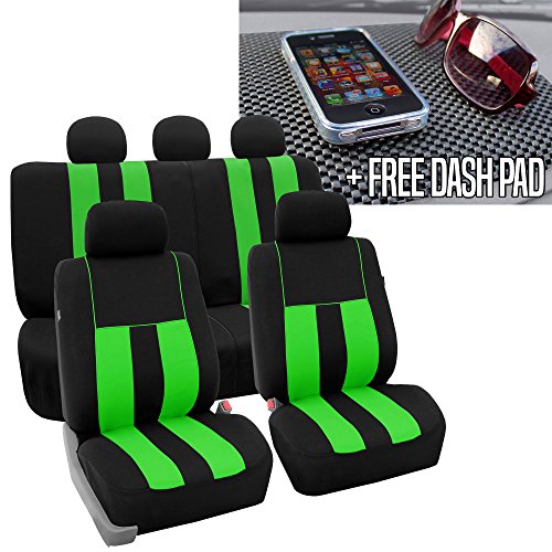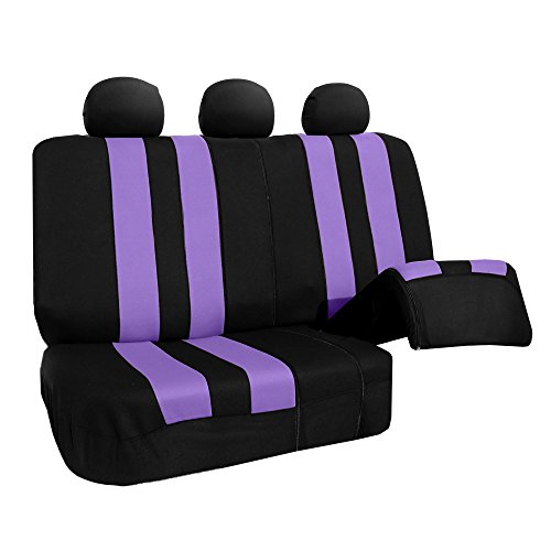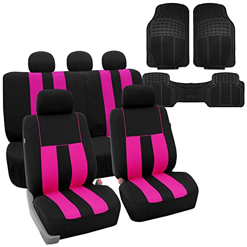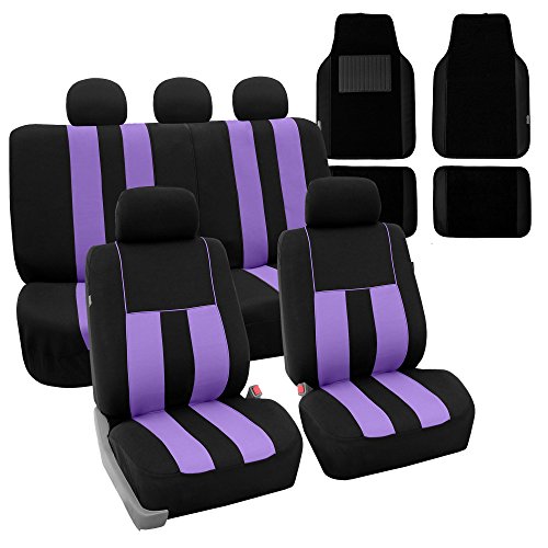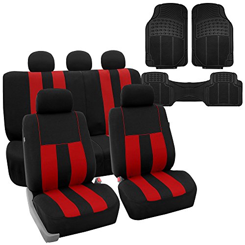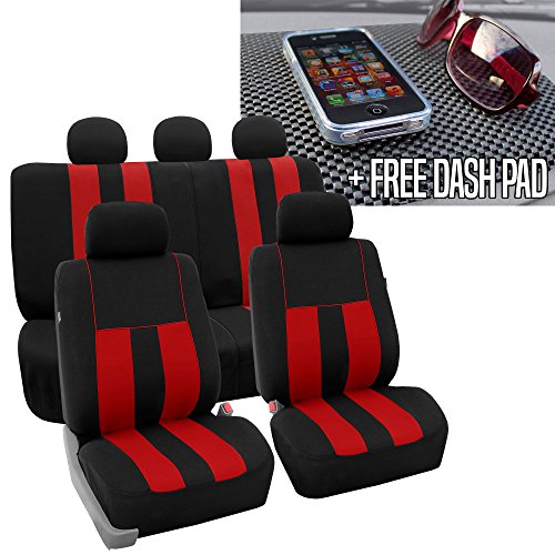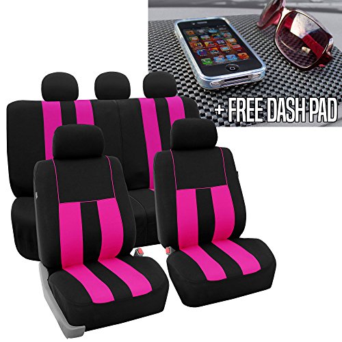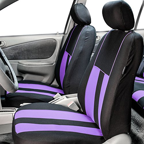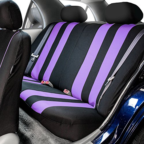 Ride in style with our boldest design yet. The eyecatching thick stripes of color are sure to catch attention. Comes in a variety of colors to match any interior. Our high quality fabric is backed by 3mm of foam padding to disperse heat and keep you cool and comfortable, even in the hottest temperatures. This full set includes seat and headrest covers two (2) bucket seats , one (1) rear split bench, 5 headrests covers and Steering Wheel Cover w. Seat Belt PadsFeature