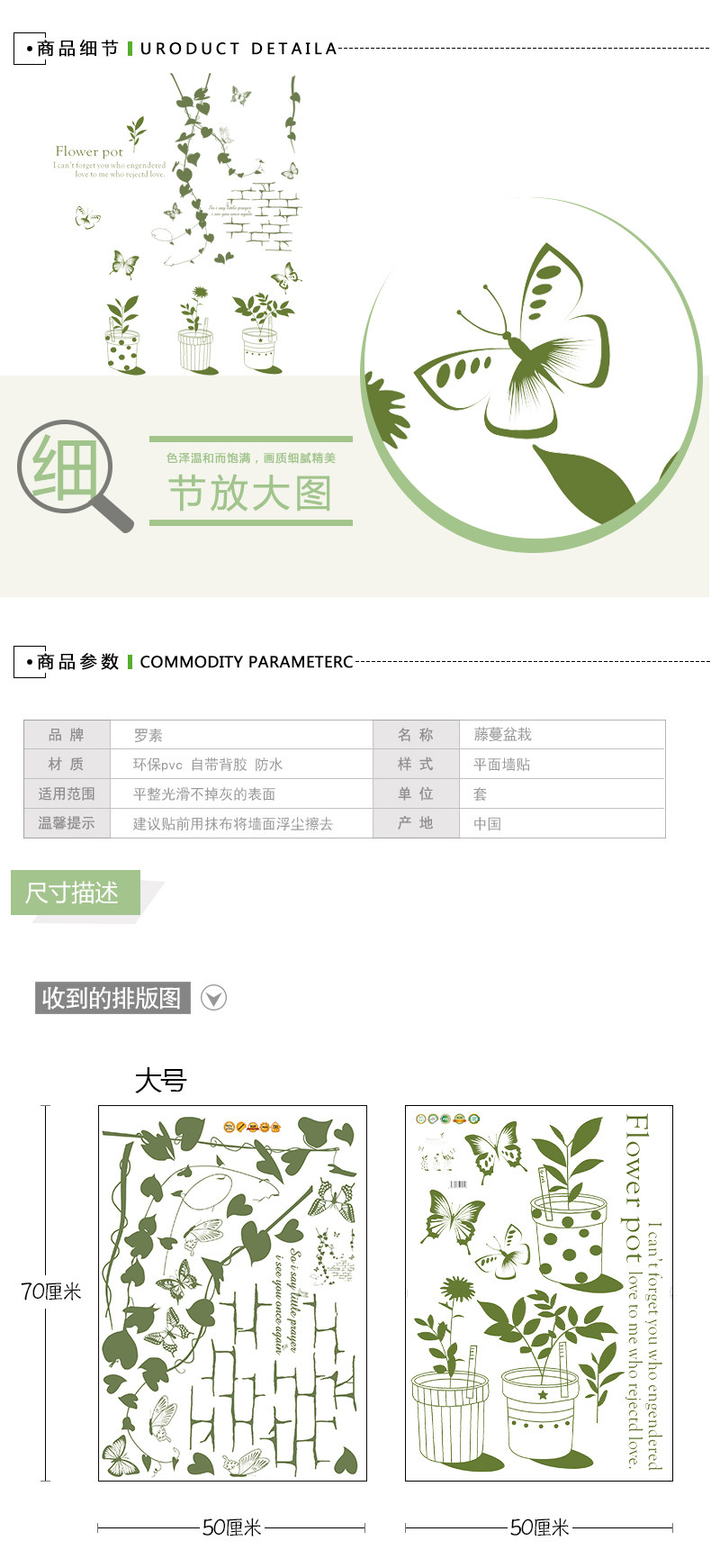 小清新创意藤蔓墙贴墙纸自粘贴画宿舍卧室房间防水墙壁装饰品贴纸