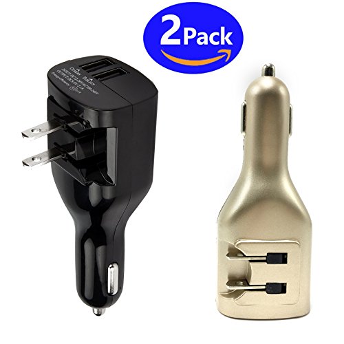 -. Feature : Dual USB Car Charger:Charge two devices at once with this All-in-One charging device. / All In One Design:Wall charger and car cigarette lighter charger all in one design, You can charge your phone tablets in the car or at home. / Portable: Dual USB Ports and with foldable plugs,handy size, easy to storage and carry,travel essential. / Safety: 2.1A outputs charger with overheated, overcurrent, transient overpressure protection prevent overcharging. You can talk and recharge at the same time. / Widely used: Standrd dual USB port 2.1A output for all phone,iPhone 6S/6/7/7Plus,Samsung Galaxy Series S7/S8 Edge,tablet and iPad kindle and more.