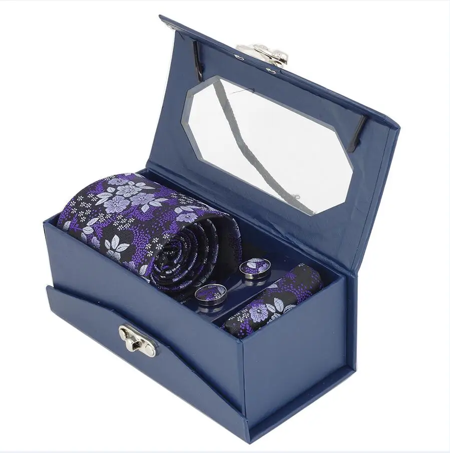 Tie Set:Tie + Handkerchief + Cufflinks + Gift Box Set