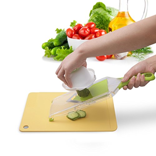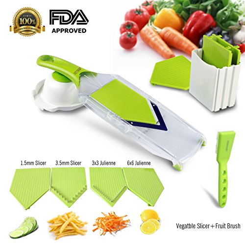 -. Title : Mandoline Slice -Asscom® Vegetable Slicer - Food Slicer - Vegetable Cutter - Cheese Slicer - Vegetable Julienne Slicer with Surgical Grade Stainless Steel Blades, One Pcs Kitchen V Slicer Stainless Steel Vegetable Julienne Slicer+One Pcs Vegetable Brush, 4-Blade Spiral Slicer