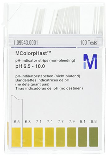 EMD Millipore MColorpHast 1.09543.0001 Non-Bleeding pH-Indicator Strip, 6.5-10.0 pH Range, Plastic Box (Case of 100 boxes, 10,000 total strips)