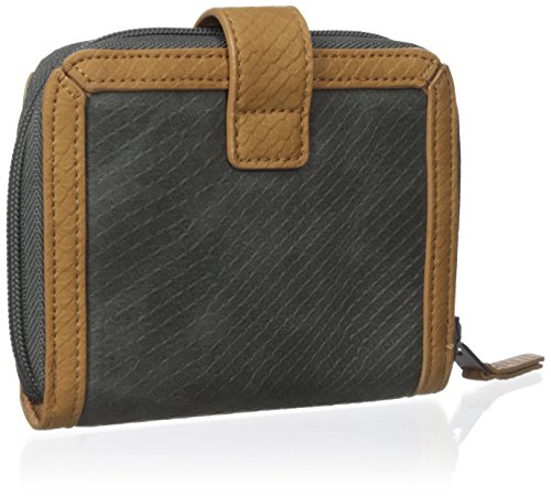 Small textured faux leather wallet, zip around, strap fastening with magnetic snap closure