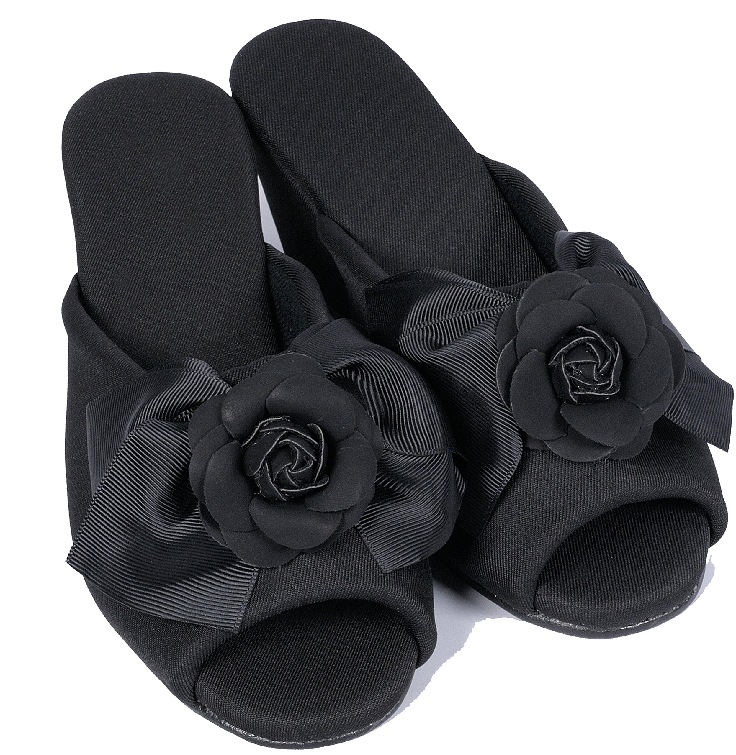 Stylish 7cm heel slippers ladies black ribbon black Camelia TO-307