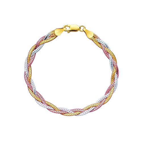 -. Title : JewelStop Silver Rose Rhodium Yellow Shiny Diamond-Cut Tri-Color Fancy Weave Anklet Bracelet - 10"