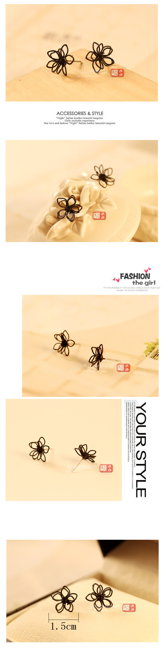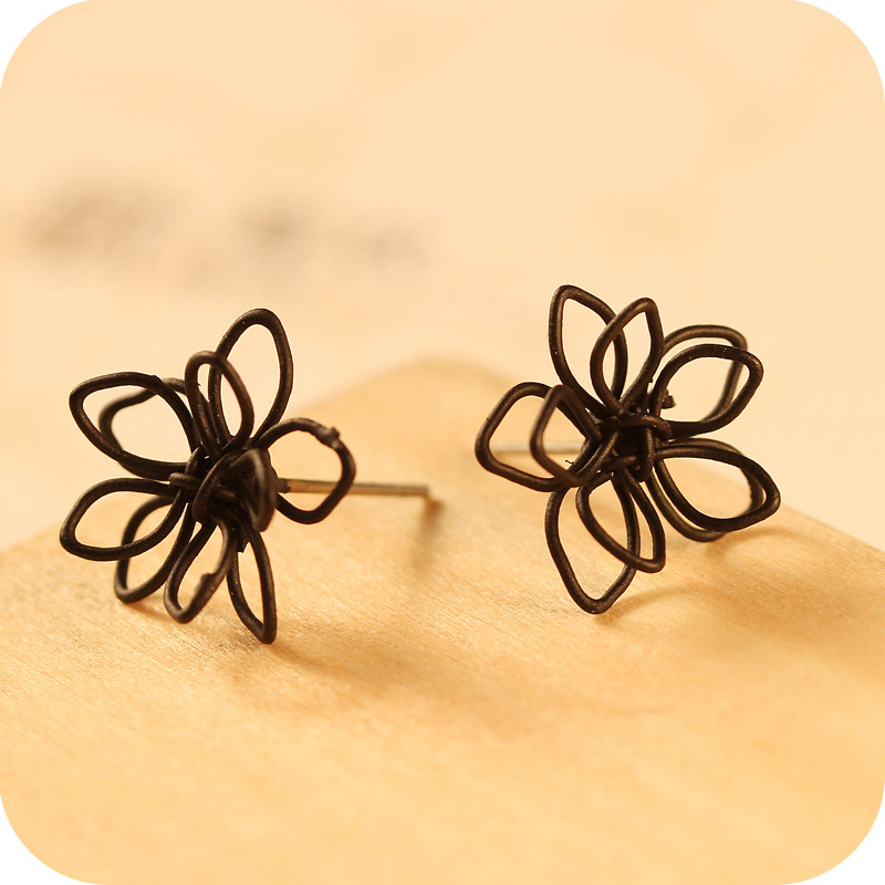 Korean jewelry female fashion simple double-pierced earrings black flower lady