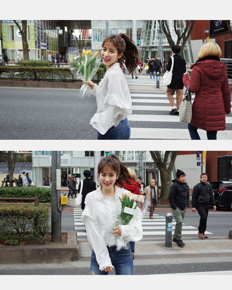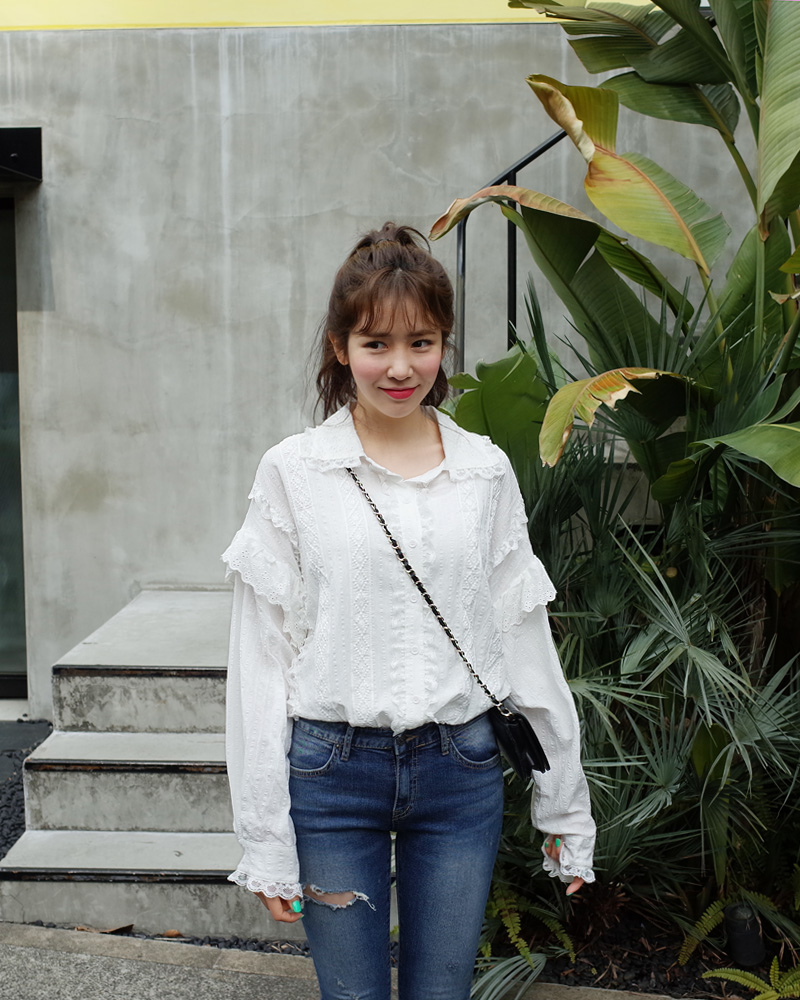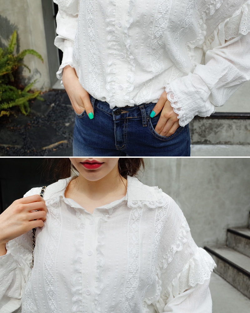 - 袖とフロントのレースディテールで女性らしいルックを完成してくれます