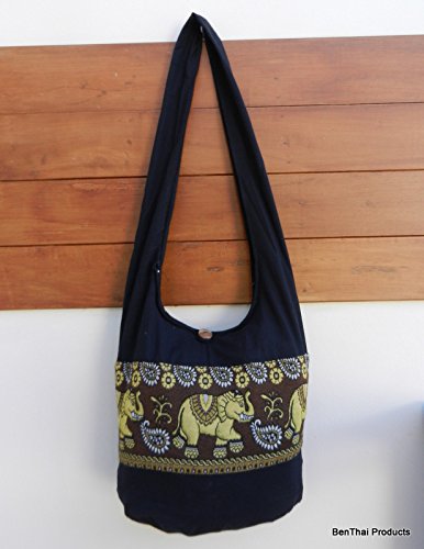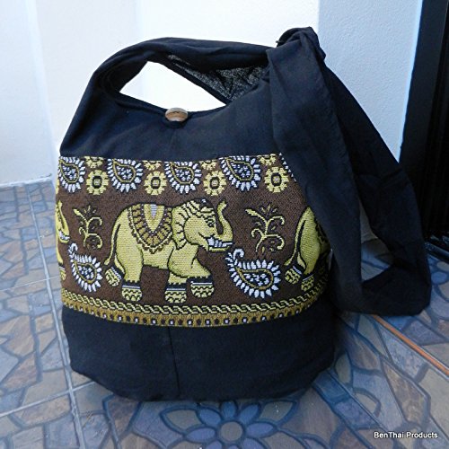 -. Brand : BenThai Products -. Color : black -. Department : unisex-adult -. Feature : Brand new with Tag "BenThai Products" in Original Packaging & Signature gift. / handmade with 100% cotton / Size: 18" wide by 14" deep by 7.5" base, 44" end to end shoulder strap / Fully lined with the zippered compartment and a zippered inside pocket. -. PackageQuantity : 1 -. ProductGroup : Shoes -. ProductTypeName : HANDBAG -. Size : Large -. Title : BTP! Jet Black Ethnic Elephant Paisley Sling Crossbody Bag Shoulder Purse Hippie Hobo Gypsy Bohemian Large