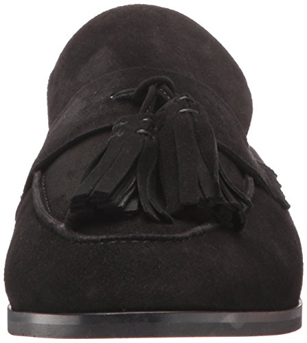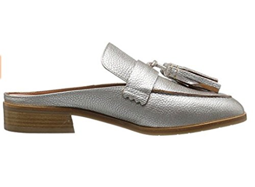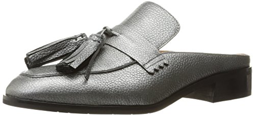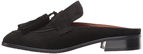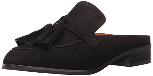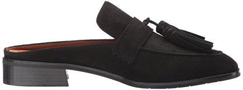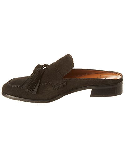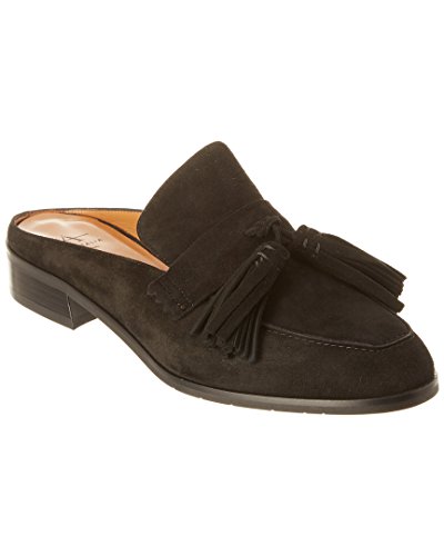 Product DescriptionTapered toe suede tassel mule on a leather stacked heel.0