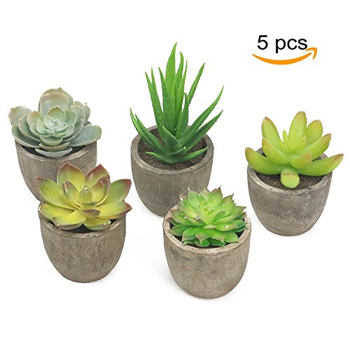 Comes with 5 pieces including the pots and the plants. Great for decorating your desks, windows, book cases etc! You can line them up in one area or take advantage of the multiples and put them in different places around your house! Very cute!
